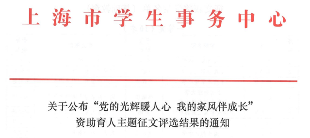 beat365官网在上海市“党的光辉暖人心 我的家风伴成长”资助育人主题征文评选中获佳绩