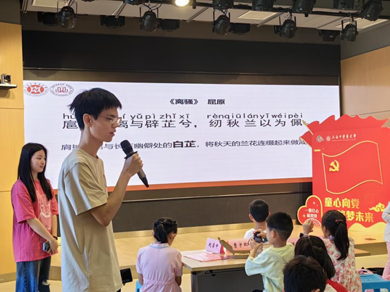 中医药是中华优秀传统文化的瑰宝之一,今年的上中医暑托班,还融入经典朗诵、民乐赏析等中华优秀传统文化元素。志愿者带领孩子们朗读经典名著,涵养“腹有诗书气自华”的文化底蕴;二胡、古筝、琵琶等民族传统乐器被搬进了课堂,让孩子们感受中国民乐之美。此外,团区委也为暑托班送来两堂传统文化课程——古诗词贴画、皮影戏DIY。古诗词贴画课程以经典古诗词为灵感,巧妙地将文字转化为视觉元素,孩子们在创作古诗词贴画的过程中领悟诗词中的意境与情感;皮影戏DIY课程则重在动手,孩子们不仅学习皮影戏的历史渊源和制作工艺,还能亲手演绎一番。
