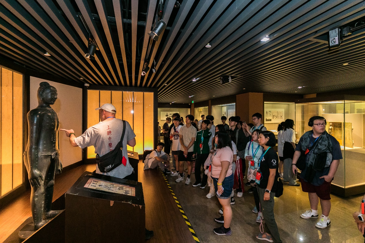 在博物馆内,交流团的师生们沉浸式地参与了中国传统养生功法——五禽戏的习练,他们告诉功法老师,这是首次体验五禽戏,动作虽然看起来简单,但这是一项综合性的健康运动,要做好并不容易。一名带队老师表示回国后将跟随视频继续练习五禽戏。