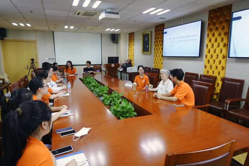 7月16日上午,学生们专访陈以平。陈以平指出,中西医学的有机结合是未来医学的方向,学科融合是加速中医药创新的重要驱动力。她坚持临床、科研、教学并进,首创“斡旋三焦”治疗肾病的学术理论,注重“辨病与辨证相结合”,并长期坚持收集临床病例以总结经验。她与学生们分享了红斑狼疮、糖尿病肾病和慢性肾炎治疗的临床心得和对膏方调养的独到见解。希望青年中医学子们精益求精、仁爱利他、守正创新,让中医药惠及更多患者。