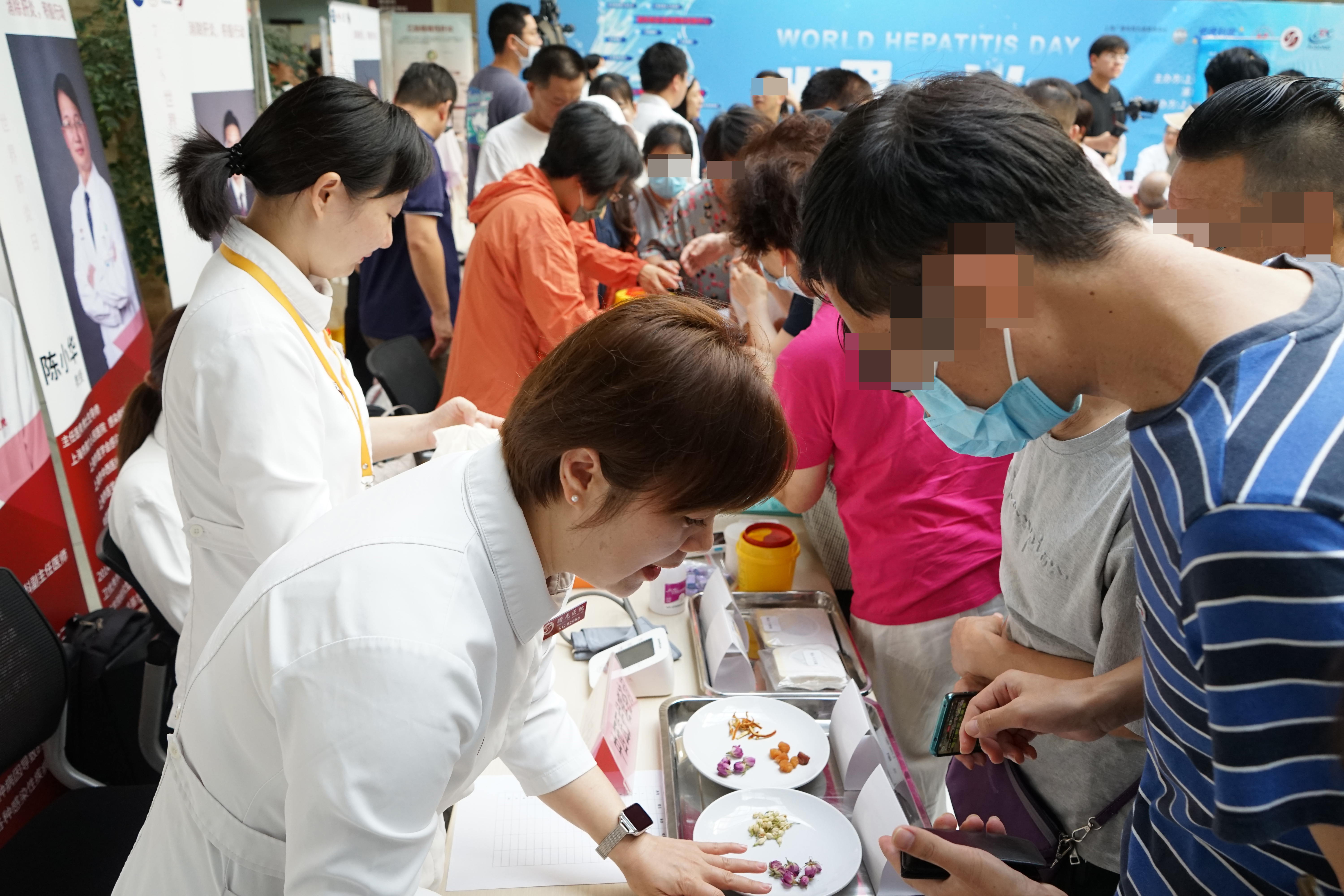今年7月28日是第14个“世界肝炎日”,主题为“消除肝炎,积极行动”。为积极响应爱肝护肝、消除肝炎的政策,动员全社会关注肝脏健康,更好地向公众宣传有关肝脏疾病的知识,从而降低肝病带来的健康损伤和社会负担,在上海市卫健委、上海市疾病预防控制局的指导下,上海市疾病预防控制中心、上海市医学会感染病分会、浦东新区疾病预防控制中心于7月28日,组织肝病权威专家在曙光医院开展线下义诊咨询等多项活动,为市民现场答疑,提供丙肝、乙肝、脂肪肝等免费检测。活动由曙光医院副院长高月求主持。