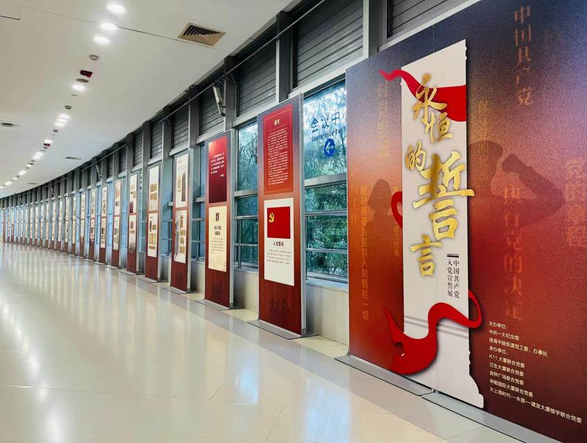 本次展览以入党誓词为主线,分为“初心不渝铸誓词”“我以我血践誓言”两个单元,中共一大纪念馆专业讲解员深入浅出地阐释入党誓词百年来的演进过程,讲述优秀中国共产党人的感人事迹,以真实生动的人物故事实现入党誓词内涵的具象表达,引领与会人员在入党誓词的发展衍变中领会中国共产党人的初心和使命,从践行誓言的典范中感悟铮铮誓言中的思想内涵与精神力量。