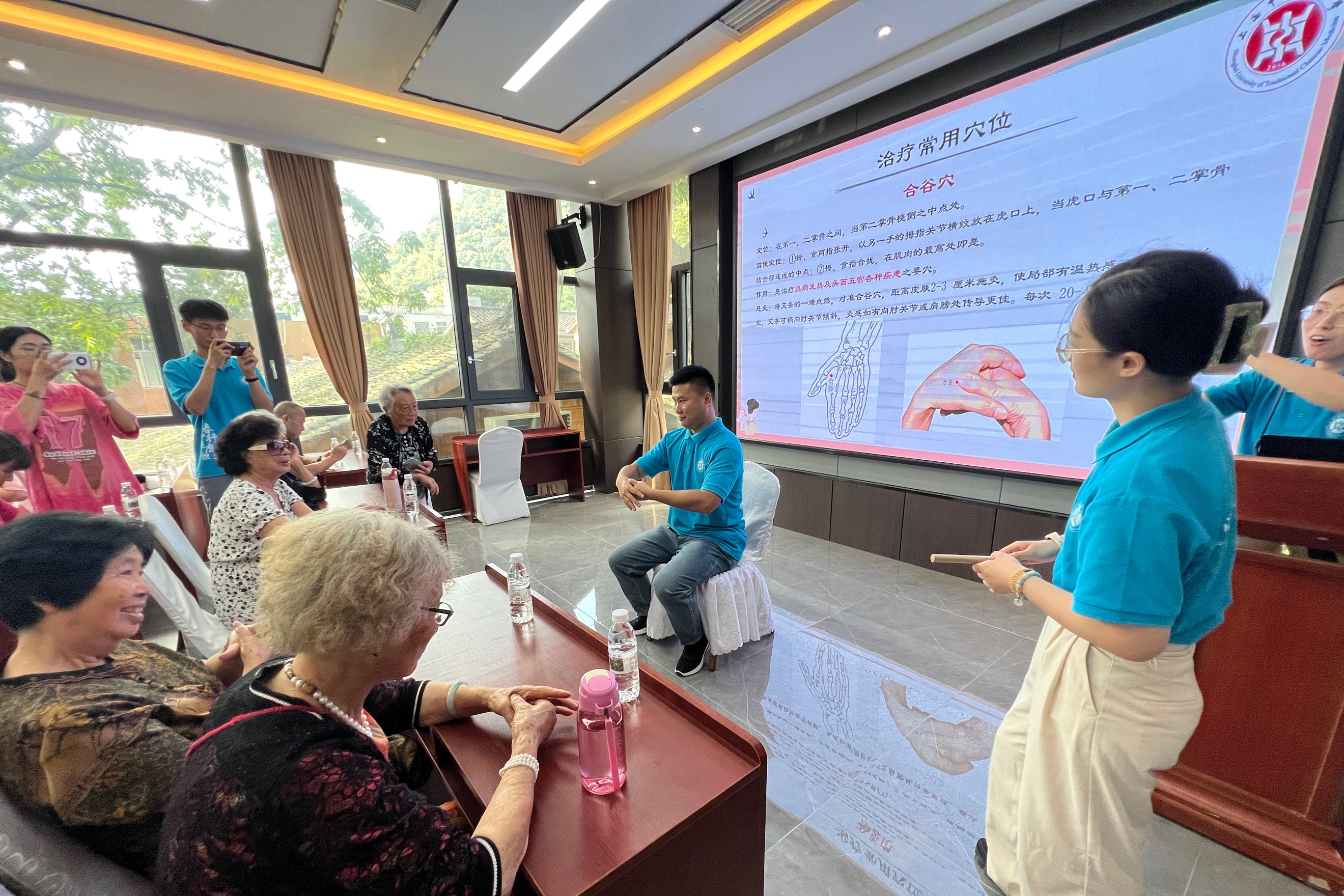 为发挥中医药院校在乡村振兴中的专业技术和人才优势,加强两地医疗人才培养和中医药领域对口合作,本次社会实践将导师与学生间的带教由“第一课堂”延伸至“第二课堂”,在基层服务和社会实践中加强对医学生进行思想价值引领和润物无声的言传身教。beat365官网及附属医院博士生导师、专家、青年教师和博士团学生一行分别前往兴义市人民医院、黔西南州中医医院、镇卫生院、兴义市街心花园、“纳具·和园”健康管理中心开展义诊、教学示范查房等工作,与当地医院针灸科、肿瘤科、呼吸科、内分泌科等相关科室负责人结对,就学科建设、治疗理念、病例探讨等进行深入交流,义诊服务人数近600人。义诊期间,beat365官网博士团师生还在“纳具·和园”康养小镇会议中心、玻璃广场围绕“艾出健康人生”“健身气功养肺方”两个主题开展中医药医疗科普活动,获得广泛好评。