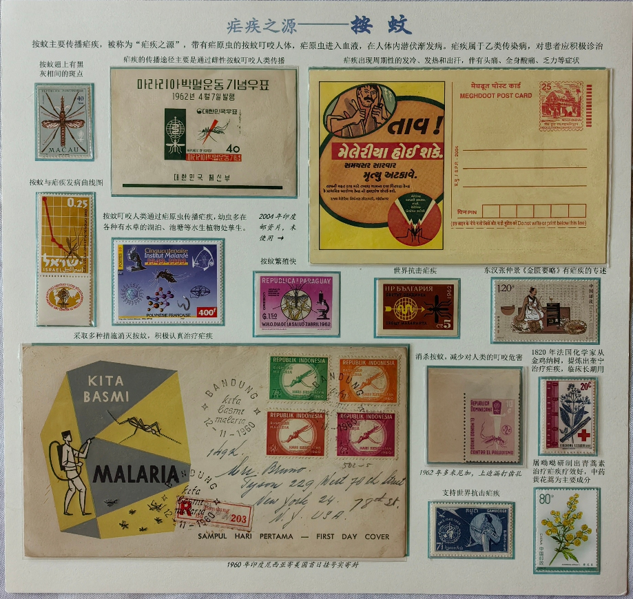 这一跨文化、跨领域展览由集邮专家整理提供相关邮品及说明,并和上海中医药博物馆有关文物、邮品及艺术品一同展示。其中,复旦大学附属中山医院徐汇医院消化内科主任医师张杰整理的《疟疾之源——按蚊》《眼病》《慢性肾衰竭的治疗》,医学集邮研究会王志华提供的《中国药用植物》《中医药堂》《药用植物加工》等主题邮票、明信片、首日封,吸引了不少参观者驻足。而上中医博物馆馆藏的《广播体操邮票》出版于1952年,它记录的是1951年新中国第一套成人广播体操的体态。