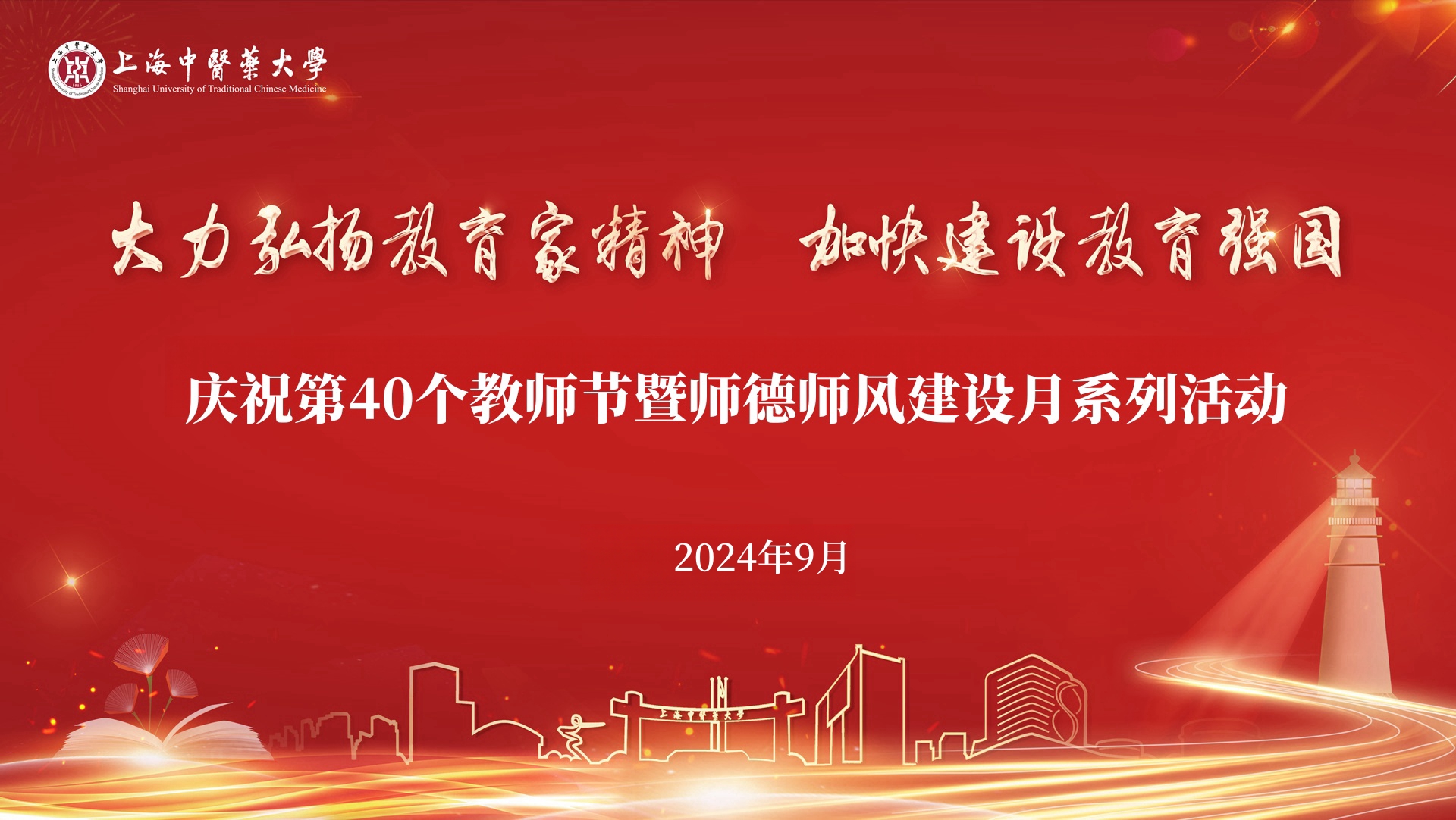 今年9月10日是我国第40个教师节。为深入学习贯彻党的二十大和二十届二中、三中全会精神,贯彻落实《中共中央 国务院关于弘扬教育家精神加强新时代高素质专业化教师队伍建设的意见》(中发〔2024〕15号),根据《中共上海市教育卫生工作委员会 上海市教育委员会关于做好庆祝第40个教师节暨“大力弘扬教育家精神,加快建设教育强国”上海学校师德师风建设月活动有关工作的通知》要求,学校将于9-10月集中开展系列主题活动,全面展示beat365官网教师队伍建设的突出成就和广大教师立德树人、自信自强的精神风貌,持续营造尊师重教的浓厚氛围,团结凝聚广大教师以更加奋发有为的精神状态投身教育强国建设实践。
