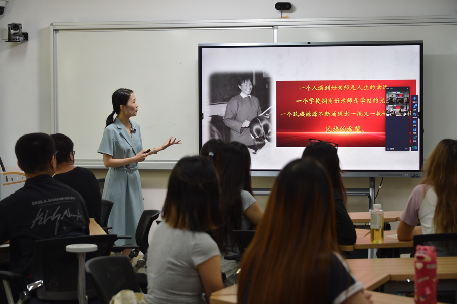 于漪认为,开这门课的目的,是要让未来的老师了解,教育家精神对中国人塑造精神世界非常重要,“实际上是塑造心灵。”因此,建设这门课需要苦心经营。她告诉师生,“教育家精神承载着我们几千年历史传统师道文化的厚重,放在新时代,它又承载着我们中国特色社会主义教育创造与活力的特征,两者要结合起来。”