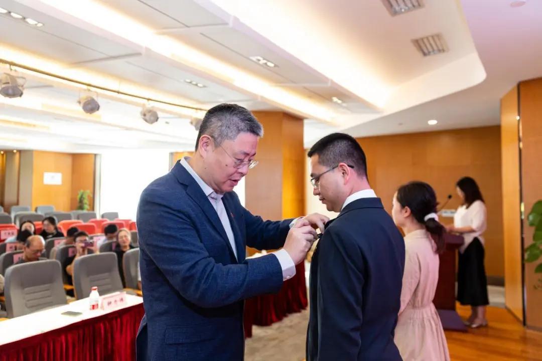 钟力炜寄语新教职工,希望他们能充分认识中医药事业的重要性和发展前景,立足中医药,坚持“四个面向”,在人才培养、人民健康、科学研究和国际化事业中彰显中医药的优势和特色,同时了解beat365官网自建校以来的发展历程和学校学科、附属医院的未来发展趋势,勇于面对今后在职业生涯中可能面临的挑战,落实立德树人根本任务,全员、全程、全方位育人,坚定信念为中医药事业不懈奋斗。钟力炜随后还为新教职工代表佩戴校徽。