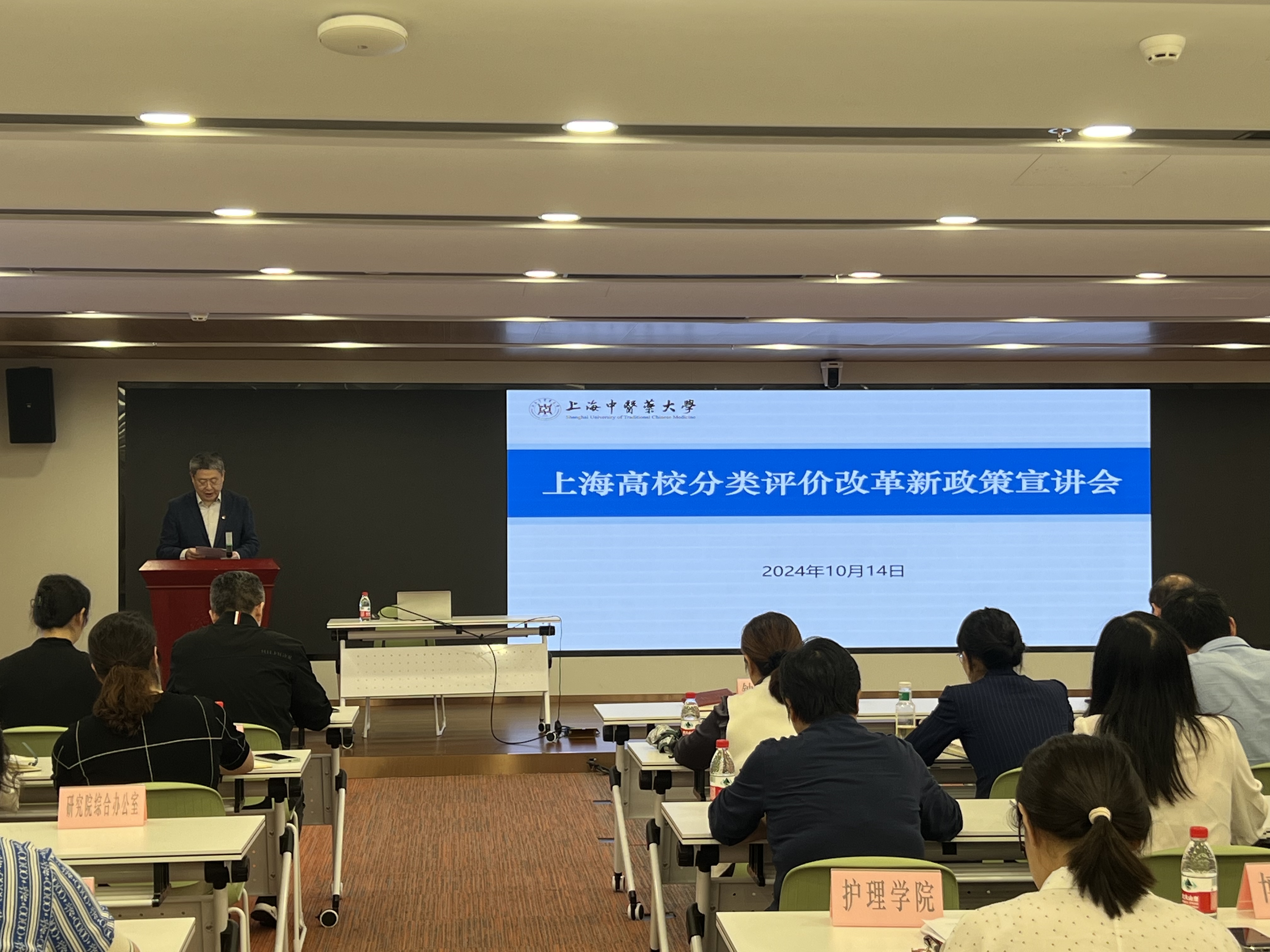 10月14日下午,上海高校分类评价改革新政策宣讲会在beat365官网中医药国际标准化大楼辅楼301会议室召开,上海市教育科学研究院院长桑标应邀来校作专题宣讲。beat365官网副校长钟力炜,各机关职能部处、二级院所负责人及学校分类评价相关工作人员等近百人参加宣讲会。会议由钟力炜主持。