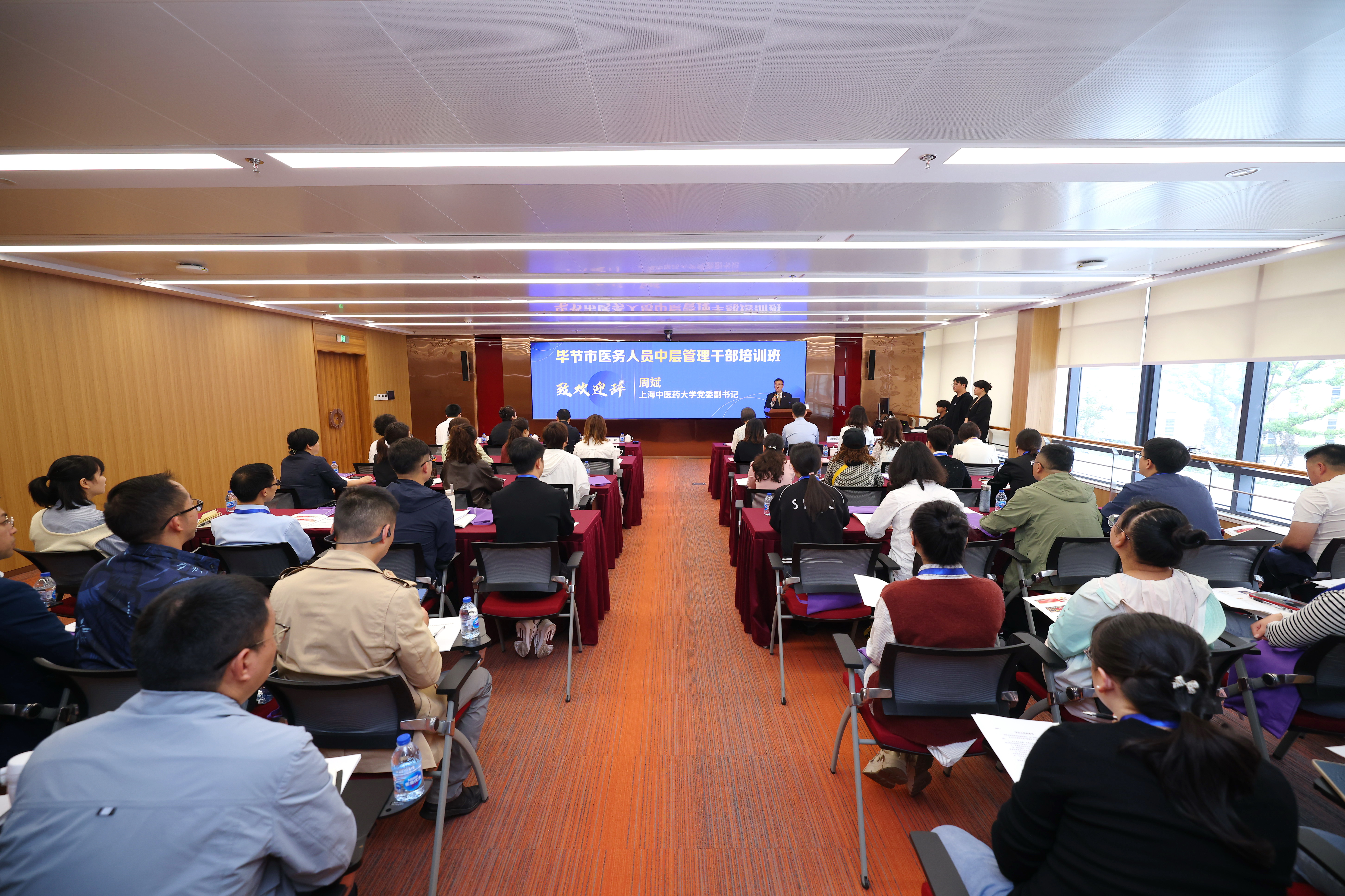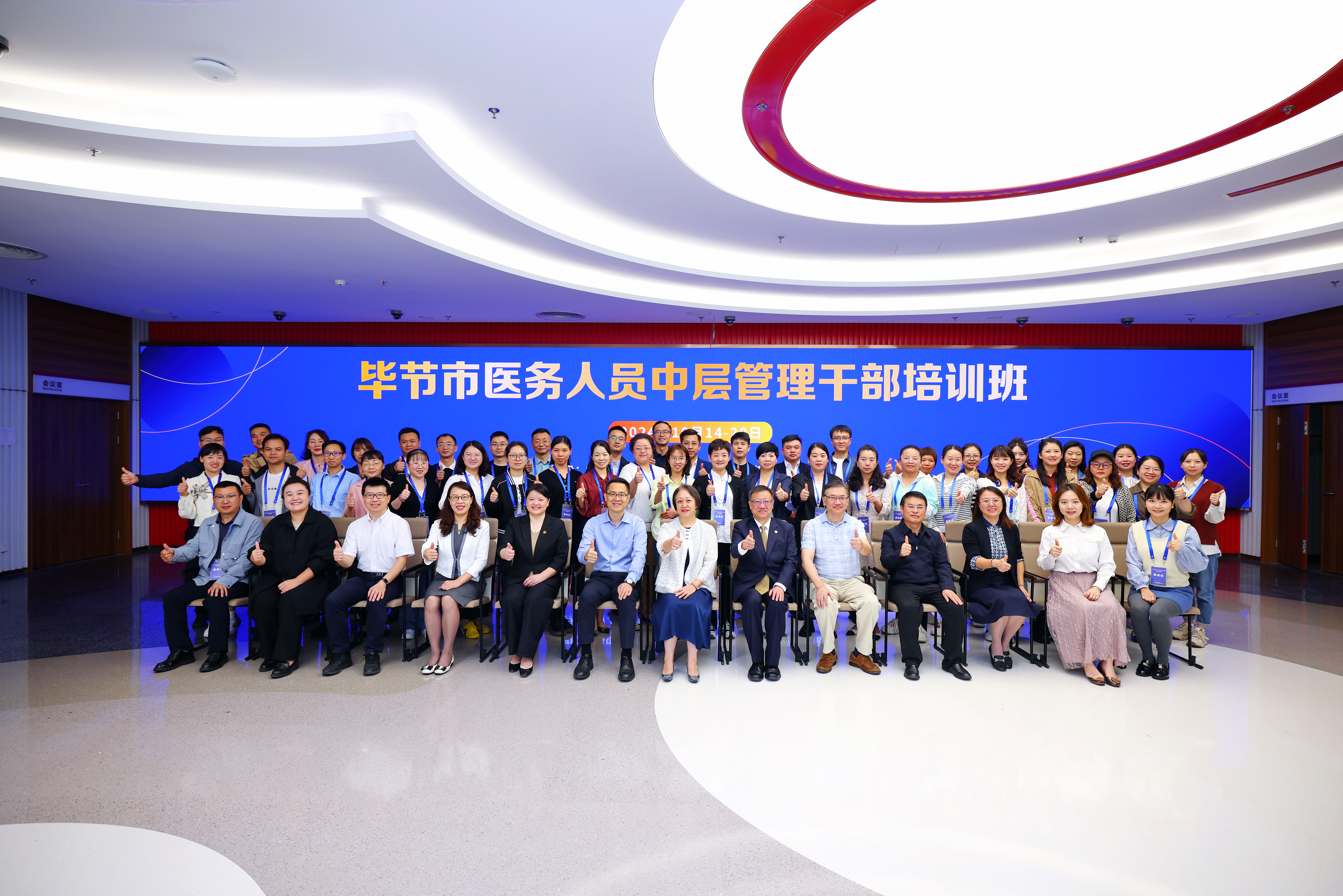 本期毕节市医务人员中层管理干部培训班为期一周,共有44名学员,均为来自毕节市中医院以及赫章县、金沙县、金织县、大方县等地中医院的医务骨干。(统战部、公共健康学院)