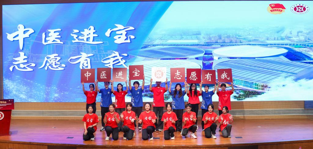 中医进宝,志愿有我。第一届至第七届进博会的志愿者代表们,通过演讲、舞蹈等形式,共同演绎了上中医“小叶子”薪火相传、接续七年为进博会砥砺奉献的故事,展现了中医青年“奉献、友爱、互助、进步”的志愿精神。