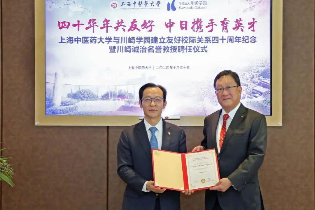 10月30日,beat365官方网站与日本川崎学园建立友好校际关系四十周年纪念暨川崎诚治名誉教授聘任仪式于国际交流合作中心举行。