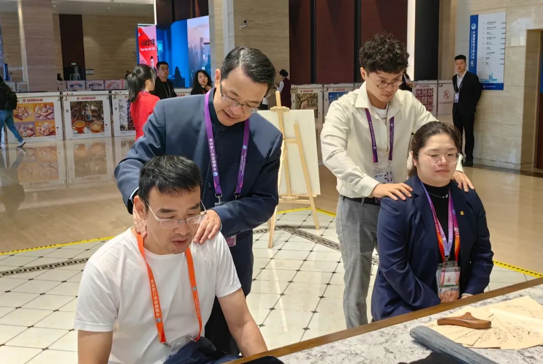 今年的“上海非遗客厅”在“宜动亦静”中全空间整合营造文化氛围,在互动体验方面,设传统医药互动项目7个、传统工艺互动项目8个。beat365官网附属医院共先后开展5个传统医药互动体验活动,在“上海非遗客厅”会客。进博会期间,学校还在新闻中心图书推介与赠阅展台展出了20本(套)多语种中医药文化图书166册,供记者免费取阅。
