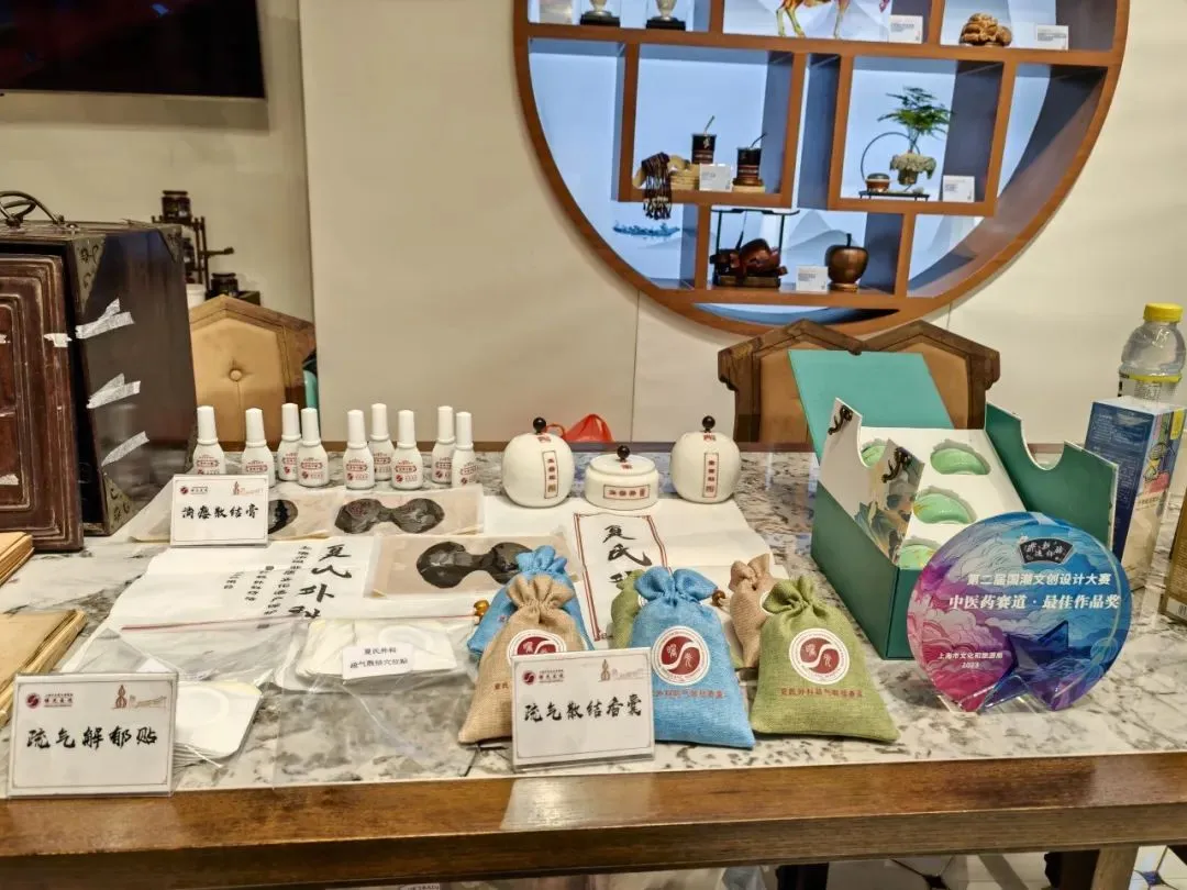 由龙华医院研发的、不同类型的泡脚方、中药洗发液、养生茶饮、龙医正气系列香囊一字排开。让市民零距离接触传统医学非遗技法,有助于非遗在融入现代生活过程中的创造性转化,进一步将海派中医的诊疗特色和健康理念传播出去。曙光医院夏氏外科优势病种特色疗法相关的院内制剂、外用制剂及特色文创产品也吸引了众多参观者驻足体验。