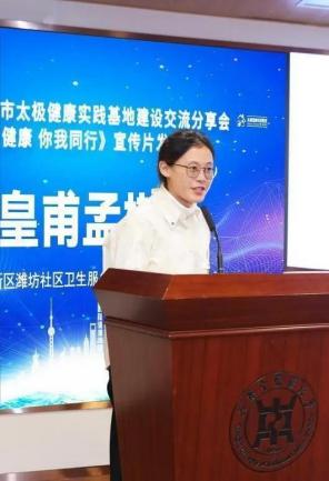仪式后,太极健康实践基地建设交流分享会举行。上海市精神卫生中心康复科主任范青为大家介绍传统功法对焦虑抑郁的课程研发与推广应用。嘉定区菊园新区社区卫生服务中心副主任吉宏彬讲述“健身气功·明目功”在社区的推广应用。浦东新区潍坊社区卫生服务中心医师皇甫孟棋交流社区太极基地开展老年人认知障碍筛查的相关工作。杨浦区殷行社区卫生服务中心中医科负责人胡伟民带来“需求为导向的养老机构太极健康建设”报告。长宁区华阳街道社区卫生服务中心中医科主任石向东分享该中心下属潘东社区卫生服务站“太极健康”进楼宇机关的典型案例。奉贤区奉浦街道社区卫生服务中心中医科副科长王忆薇以“岐黄有约·药膳飘香”为题,讲述该中心积极下沉功能社区,向居民科普“药物与食物融为一体,食借药力、药助食功”思想。浦东新区唐镇社区卫生服务中心中医副主任医师张蔚作题为“太极拳在社区的推广和发展”的汇报。