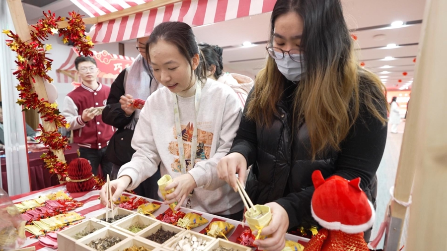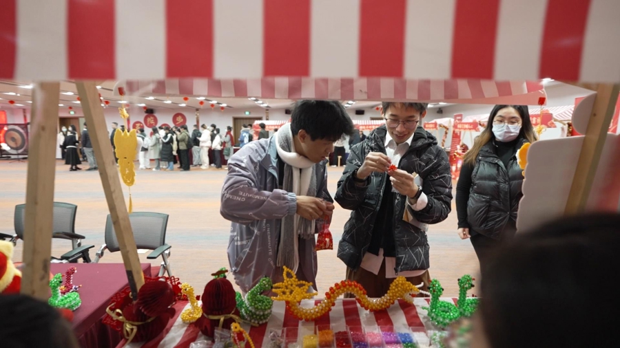 寒假中,迎来首个“非遗版”春节。上海市教委15日主办“贺岁传温情 春韵映初心”2025年师生迎新春活动,请浦东片区6所高校留校过寒假的学子,汇聚beat365官方网站“抱团”迎新春。上海海关学院、上海科技大学、上海第二工业大学、上海健康医学院、上海立信会计金融学院及beat365官方网站200余名中外师生,不仅提前参加了校园“春晚”和文化市集,还分赴沪上六大地标进行Citywalk 打卡活动。