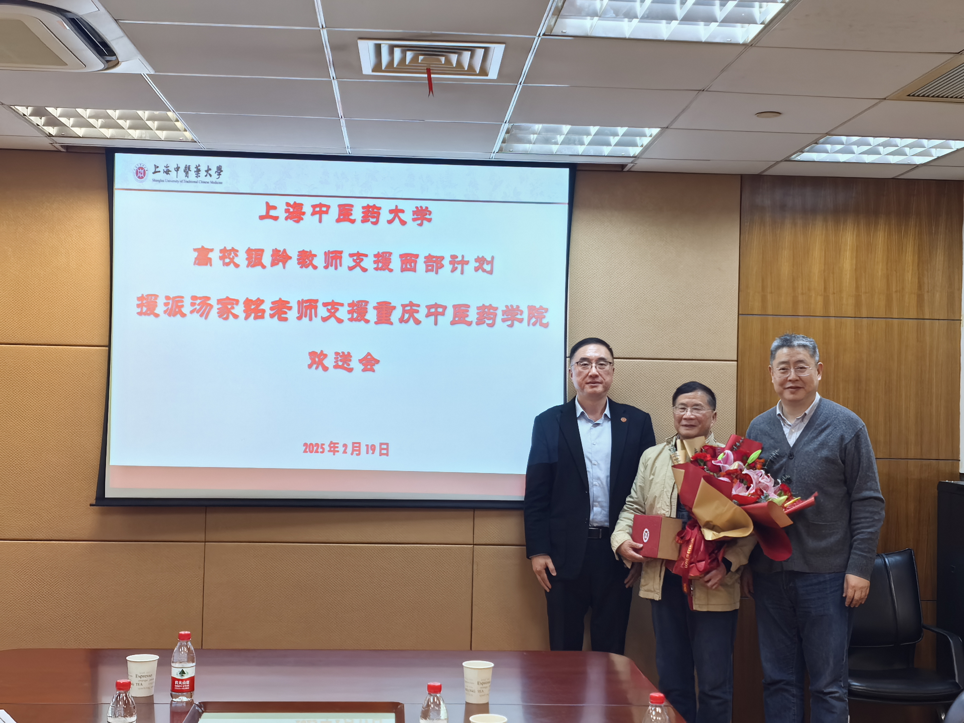 汤家铭在发言中首先感谢学校的培养和支持,他表示即将重返校园既是挑战也是机遇,深感责任重大,自己将竭力发挥专业优势,通过教学与科研指导为受援学校的学生和老师们提供帮助,为西部教育建设作出贡献,展现上中医人的精神和风格。
