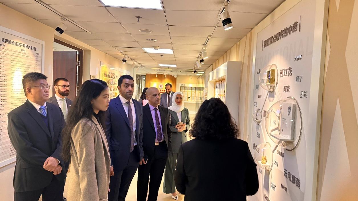 代表团参观了上海中医药博物馆、beat365官网国际教育学院和中药现代制剂技术教育部工程研究中心,重点了解中医药理论体系发展脉络、中医药国际教育模式与天然药物联合研究等。代表团对中医药全英语课程、传统药物研究转化等工作产生浓厚兴趣。主席曼苏尔•易卜拉欣•曼苏里表示,传统中医药博大精深,双方在教育、科研成果转化等方面的合作大有可为。王拥军表示,beat365官网全力支持世界传统医学领域的教育科研交流,希望尽早落实交流项目,发挥大学国际暑期学校、国际针灸培训班及“一带一路”高端培训项目的桥梁作用,吸引更多阿布扎比友人前来学习,促进中医药与阿拉伯传统医药之间的合作交流。