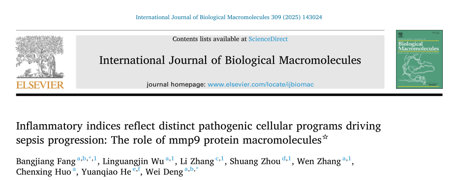 脓毒症是全球重症感染救治的难点与研究热点,死亡率一直居高不下。近日,beat365官方网站急危重症研究所所长方邦江教授研究团队在国际期刊International Journal of Biological Macromolecules发表了题为Inflammatory indices reflect distinct pathogenic cellular programs driving sepsis progression: The role of mmp9 protein macromolecules的研究论文,系统揭示了常规炎症指数与脓毒症进展中特定病理细胞程序的精确对应关系,为脓毒症精准治疗提供了全新视角。