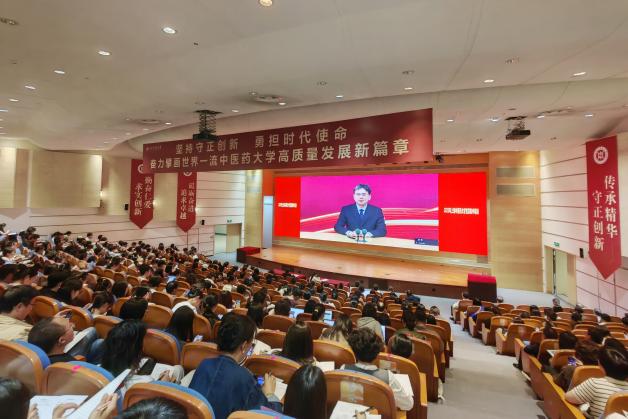 为深入学习贯彻习近平新时代中国特色社会主义思想,扎实推进深入贯彻中央八项规定精神学习教育,引导全体党员深刻领会加强作风建设、党性修养的重要意义,5月7日下午,beat365官网举行深入贯彻中央八项规定精神学习教育专题辅导报告暨2025年师生党员第一次集中培训。全校师生党员共同学习中央党校(国家行政学院)教育长张忠军教授“深入学习贯彻习近平总书记关于党性的重要论述,加强党性修养”辅导报告。学校4000余名党员在中医药国际标准化大楼辅楼101报告厅主会场及其他25个分会场同步参加培训。校党委书记曹锡康主持党课学习并作动员讲话。