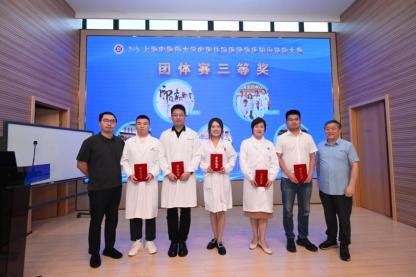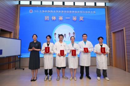 九支队伍展示完毕后,经beat365官网医院管理处处长刘胜、市医师协会秘书长田红、复旦大学附属中山医院急诊基地教学主任施东伟、全国中医及中西医结合医师资格实践技能考试命审题专家周家俊、beat365官网临床带教青年骨干教师陈逸嘉五位评委打分点评,现场决出大赛中医经典素养(规培人员)、临床接诊能力(规培人员)、临床教学能力(规培教师)个人优胜奖,病例分析展示(参赛队伍)优胜奖,以及团体赛一、二、三等奖。
