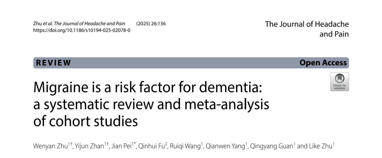 龙华医院裴建教授研究团队揭示偏头痛是痴呆症的风险因素