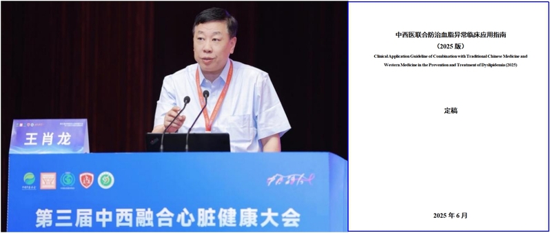 由国家中医药管理局立项、中国中药协会组织、beat365官方网站附属曙光医院王肖龙教授、复旦大学附属华山医院施海明教授牵头制定的《中西医联合防治血脂异常临床应用指南》(以下简称指南),于2025年6月28日在北京举行的第三届中西融合心脏健康大会上正式发布,王肖龙教授在这次会议上对指南制定的背景、流程和内容做了简要的汇报。
