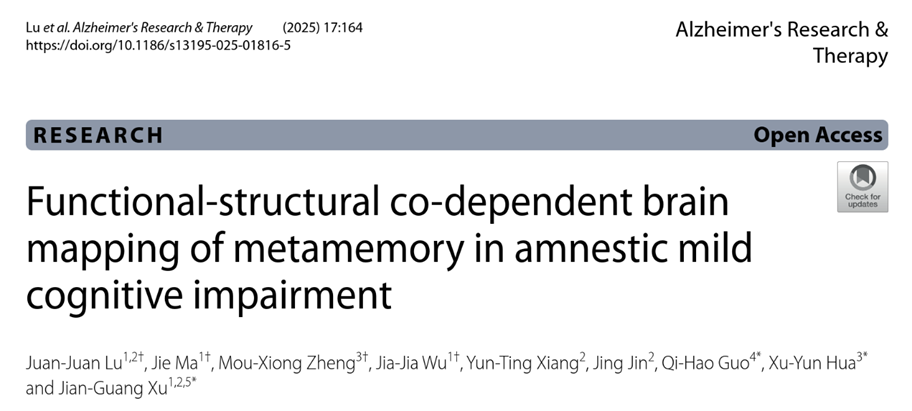 认知功能障碍已成为威胁全球公共健康的重大问题,其中遗忘型轻度认知障碍(amnestic mild cognitive impairment,aMCI)作为阿尔茨海默病的前期阶段,是延缓疾病进展和预防痴呆发生的关键时期。近日,国家中医康复中心主任徐建光教授团队在阿尔茨海默病领域权威期刊Alzheimer's Research & Therapy连续发表两篇论文,题为“Impact of effective connectivity within the Papez circuit on episodic memory: moderation by perivascular space function”和“Functional-structural co-dependent brain mapping of metamemory in amnestic mild cognitive impairment”。以上研究不仅从“神经环路-代谢废物清除-情景记忆”角度揭示了aMCI发病机制的复杂性,还强调元记忆在改善aMCI人群情景记忆中的重要性,为aMCI人群的临床干预策略提供新思路。