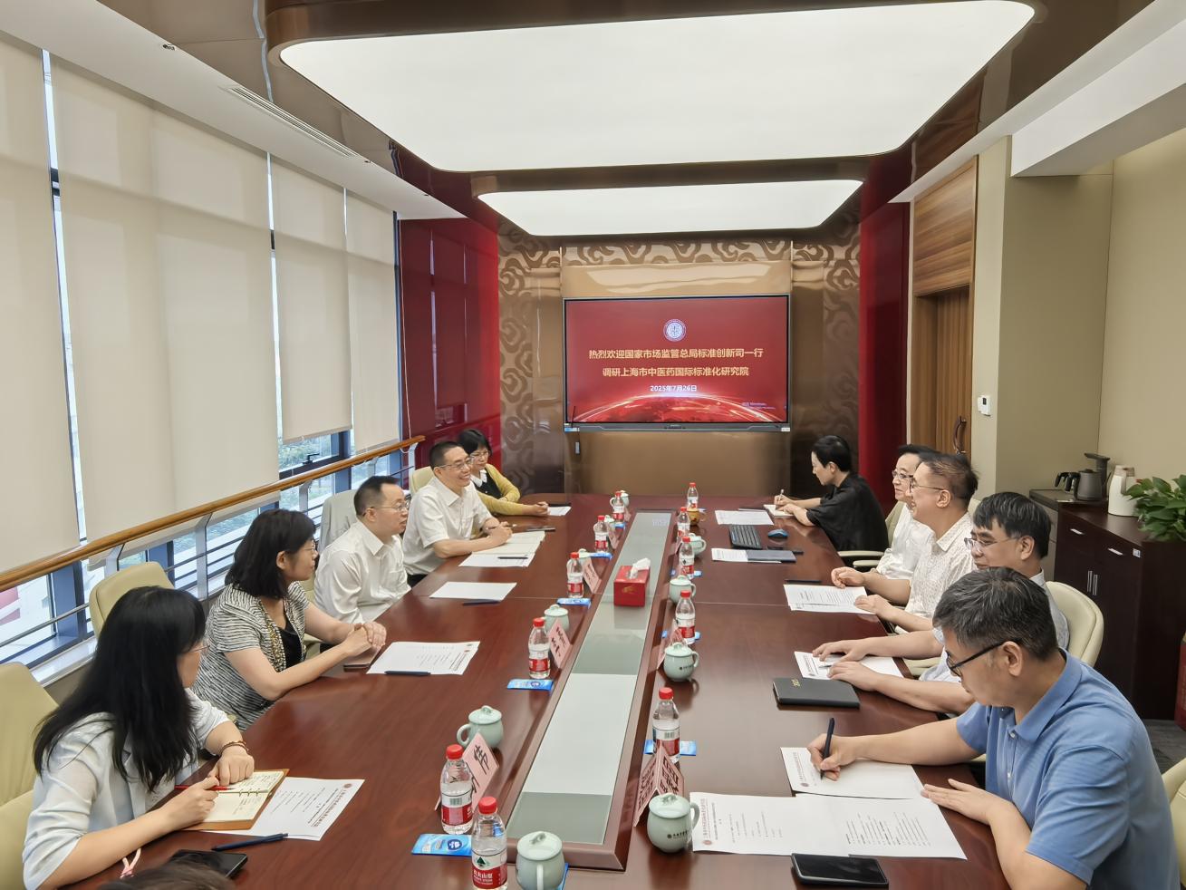 7月26日,国家市场监管总局标准创新司司长肖寒一行来访beat365官网专题调研中医药国际标准化工作。上海市市场监管局副局长王益洋、标准化处处长李菁、副处长史燕君、市中医药管理局中医药传承发展处副处长聂爱国、beat365官方网站党委副书记沈辉、ISO/TC 249主席沈远东、上海市中医药国际标准化研究院常务副院长郑林贇等陪同调研并参加座谈。