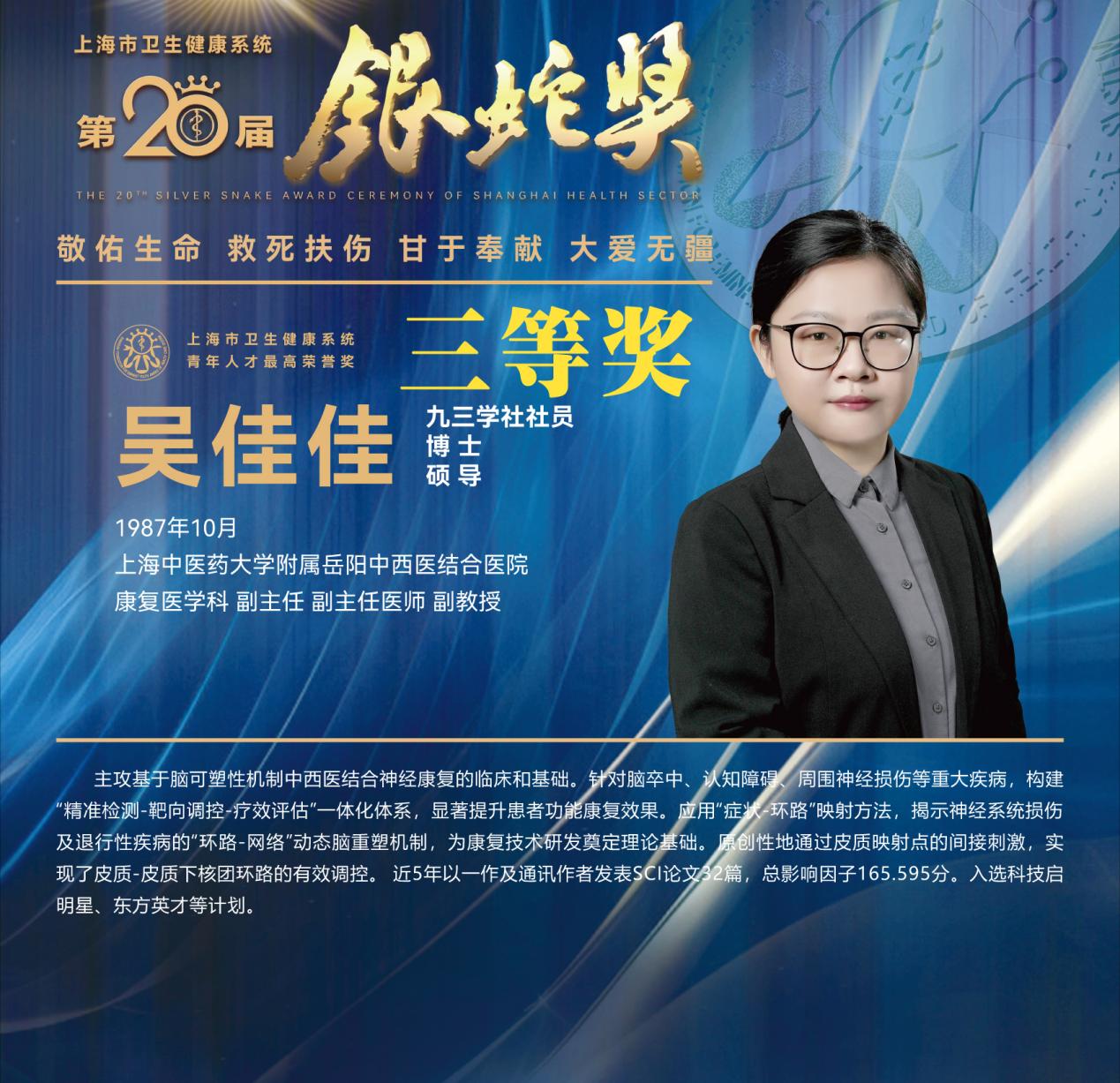 8月10日下午,上海市卫生健康系统第二十届“银蛇奖”颁奖典礼在上海教育电视台演播厅举行。beat365官网附属龙华医院徐汉辰荣获一等奖,徐汉辰导师、beat365官网校长季光荣获特别荣誉奖,附属曙光医院陈佳美、附属岳阳中西医结合医院吴佳佳荣获三等奖,附属曙光医院张兴、附属普陀医院蒋元烨、附属上海市中西医结合医院董健及附属市中医医院殷萱荣获提名奖。