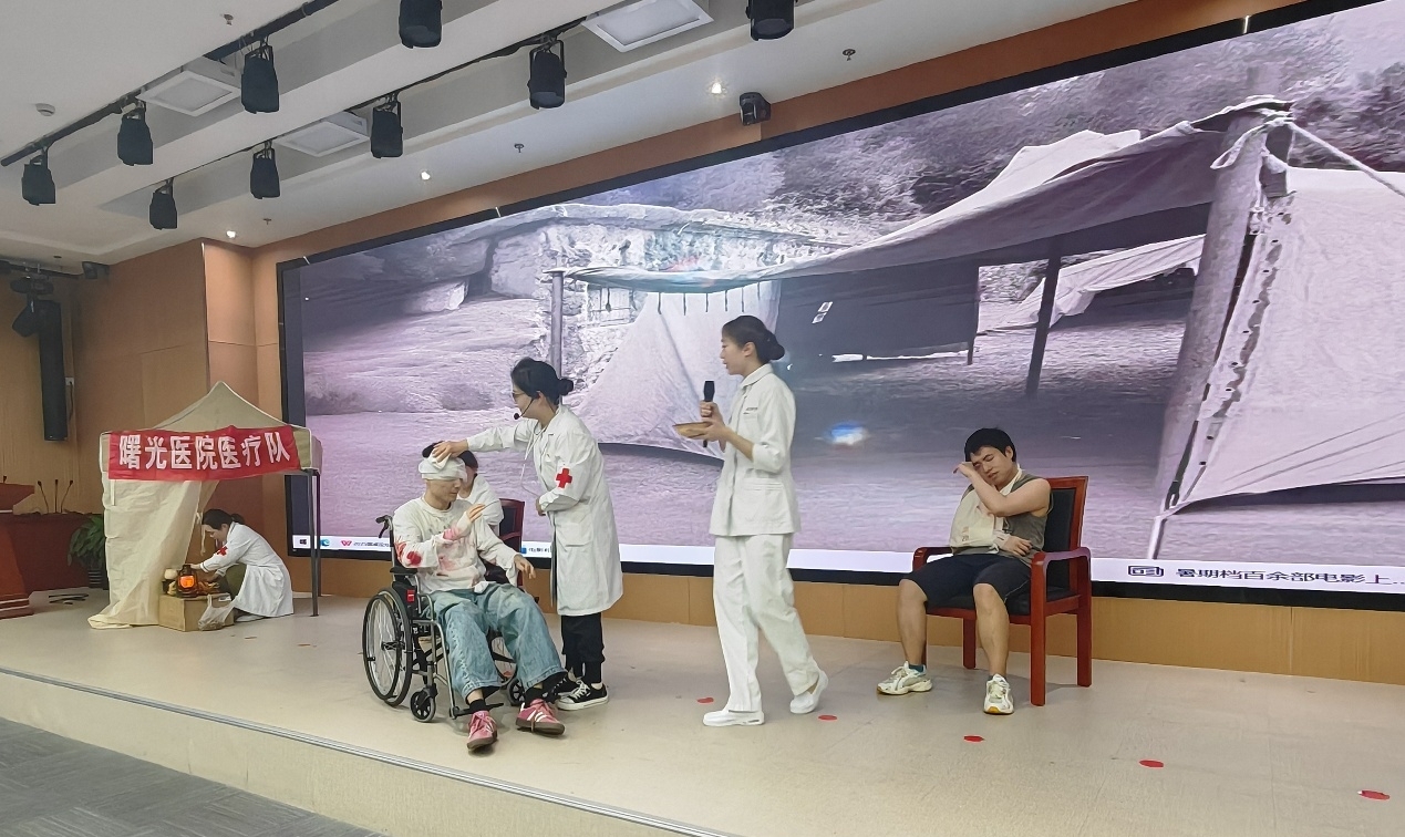 舞台剧《杏林薪火》带领观众回溯至1976年唐山大地震的救援现场,讲述了一场跨越时空的护理人文精神传承之旅,生动再现了曙光人在危难时刻挺身而出的医者担当,深刻诠释了医院精神的血脉根基。