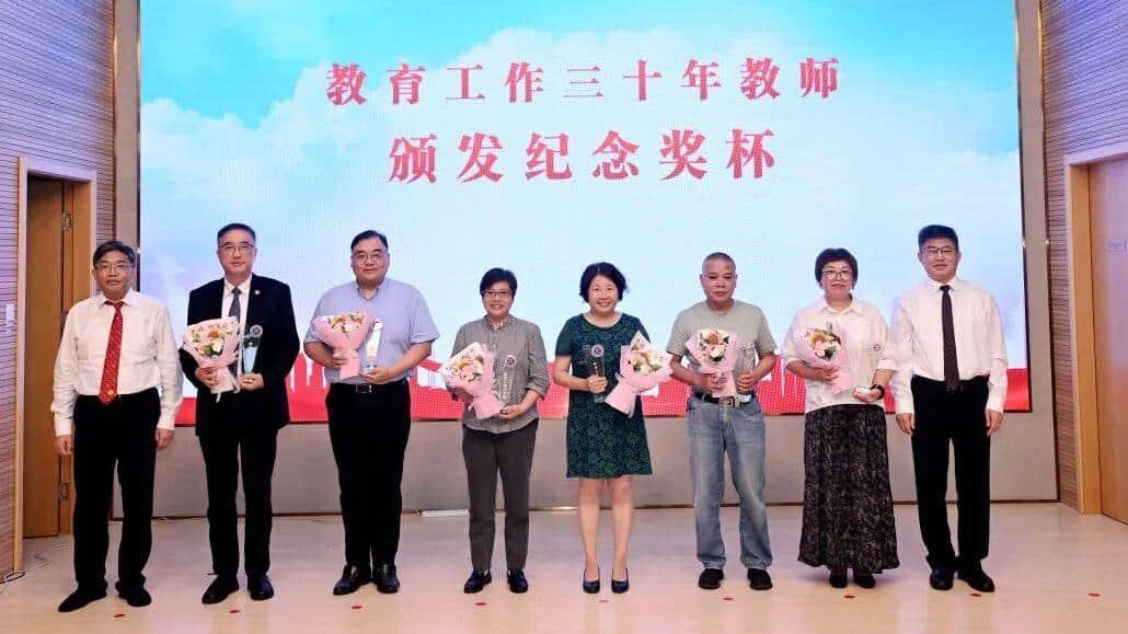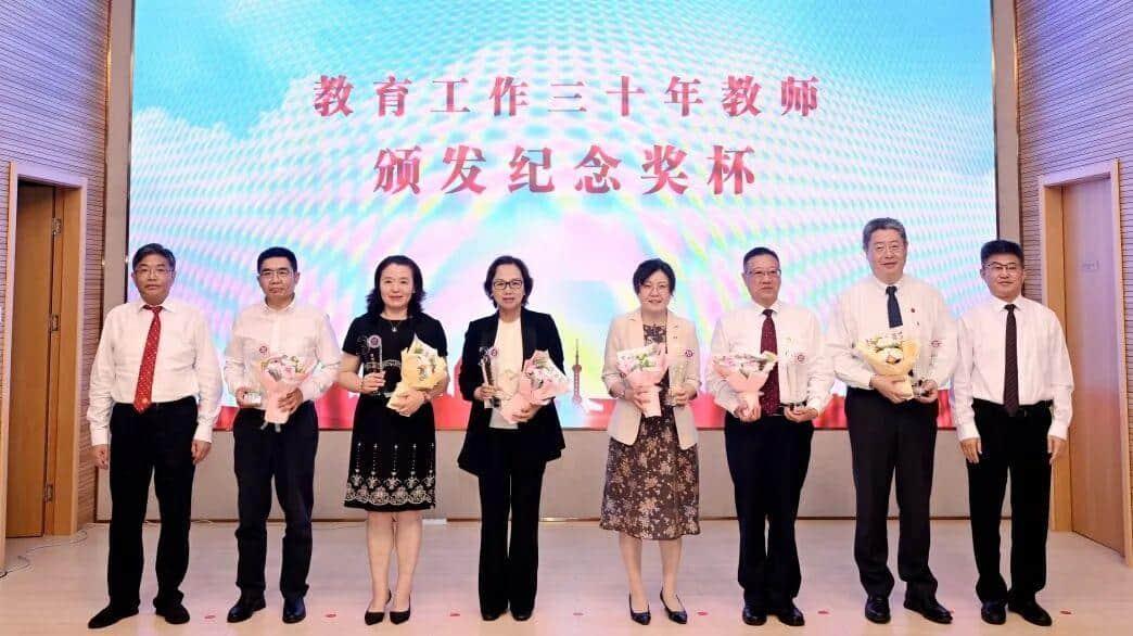 三十年光阴磨一剑,三十年身心献杏坛。从教三十年纪念视频《我的三十年》记录了从教三十年的教师们辛勤付出与默默奉献的珍贵画面,讲述了与上中医、祖国医药和教育事业共成长的动人故事。与会校领导为从教三十年的教师代表颁授纪念奖杯,感谢他们“马不扬鞭自奋蹄”的敬业态度和“不计名利无私付出”的奉献精神。