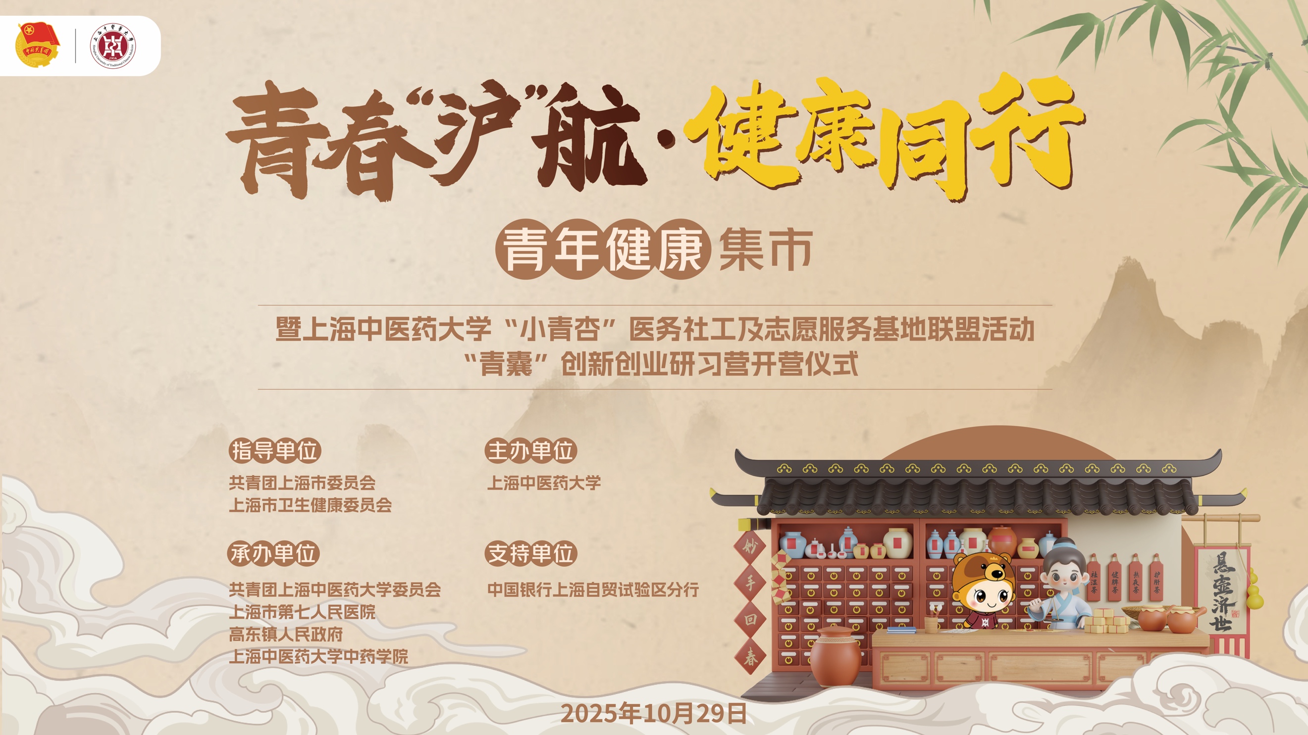 本次活动在共青团上海市委员会、上海市卫生健康委员会指导下,由beat365官方网站主办,高东镇人民政府、第七人民医院、beat365官方网站团委、中药学院共同承办。