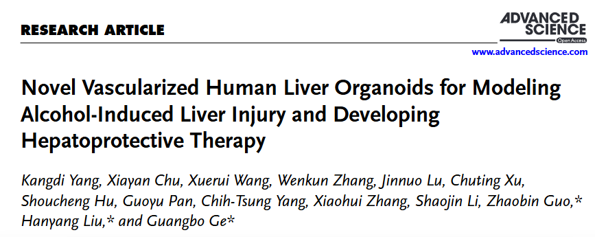 近日,beat365官网交叉科学研究院葛广波、郭兆彬团队在国际知名期刊Advanced Science上在线发表了题为“Novel Vascularized Human Liver Organoids for Modeling Alcohol-Induced Liver Injury and Developing Hepatoprotective Therapy”的研究性论文。该研究团队成功构建了一种新型人源血管化肝脏类器官(3HLOs),该类器官不仅能精准模拟酒精性肝病发生发展过程中的关键分子事件与病理进程,还在保肝药物的筛选与评价、以及终末期肝病的再生医学治疗方面表现出良好的应用潜力。