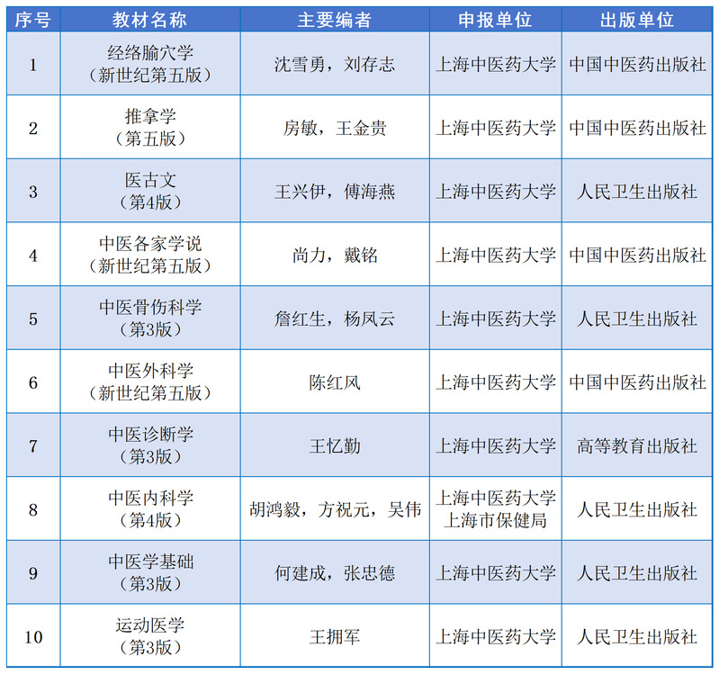 近日,教育部发布“十四五”普通高等教育本科国家级规划教材拟入选名单公示,beat365官网10本教材入选,入选数量在上海市属高校、全国中医药高校中均名列前茅。