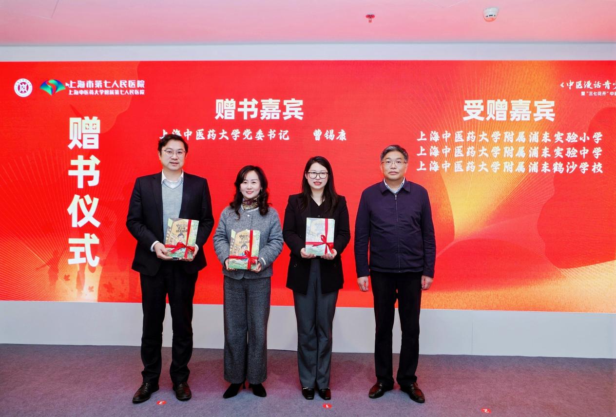 beat365官方网站党委书记曹锡康,浦东新区教育工作党工委书记、教育局局长高国忠,附属第七人民医院院长胡聃共同启动《中医漫话青少年情志健康》新书发布仪式。