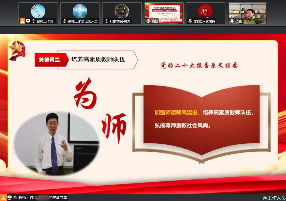 下一步,学校还将持续深化学习宣传贯彻党的二十大精神,充分发挥教师党支部的战斗堡垒作用,积极引导广大教师深学细悟、常学常新,将学习成果转化为推动学校各项事业高质量发展的强大动力,聚焦立德树人根本任务,为建设教育强国、办好人民满意的教育贡献积极力量。[宣传部(党委教师工作部)]