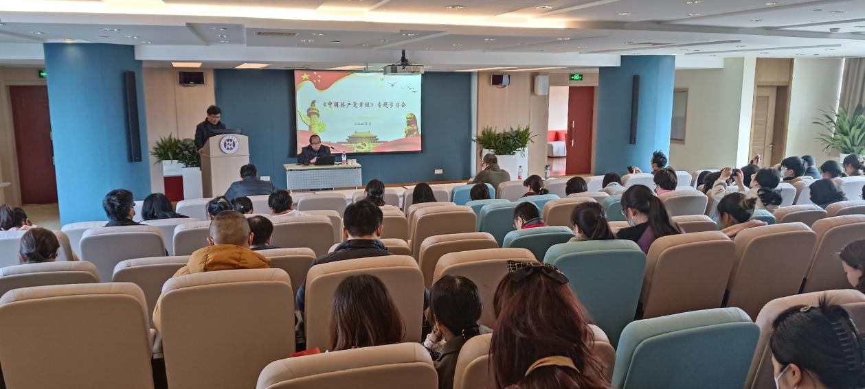 为深入学习贯彻党的二十大精神,引导广大党员切实把思想和行动统一到党的二十大精神上来,图书馆党总支邀请beat365官网“杏马”理论宣讲团成员、马克思主义学院教授周福振,于3月1日在国际交流合作中心三楼报告厅作“健全全面从严治党体系——学习二十大党章”专题辅导报告。来自图书馆党总支、科技人文研究院党总支、体育部党支部、中医药博物馆党支部、中医老年医学研究所党支部的近百名党员参加了本次学习会。会议由图书馆党总支书记石德响主持。
