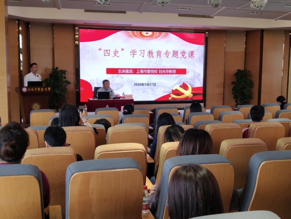 5月27日下午,校后勤党总支特邀上海市社会主义学院刘光华教授为beat365官网党员作主题为《学习“四史”,不忘初心——中共党史党建经典》的“四史”学习教育专题党课。后勤党总支全体党员,校机关党委委员、党总支委员、党支部书记等参加了本次党课学习。会议由后勤党总支副书记周强峰主持。