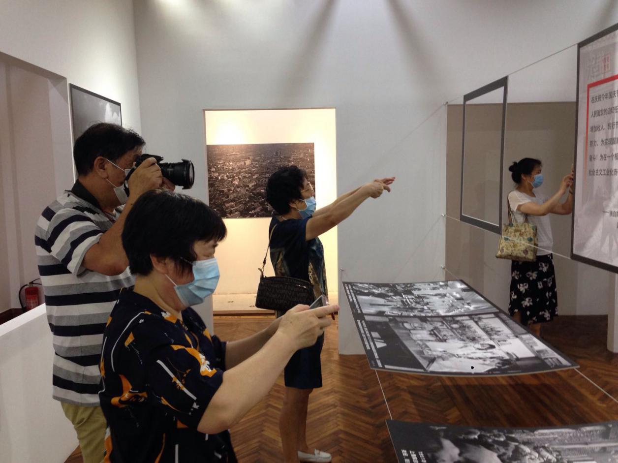 参观当天,尽管有雨,能去的党员还是准时到达。党员们认真观赏那一幅幅激动人心的摄影作品:上海解放后的第一班京沪列车、初建成的曹杨新村、人民广场的几度变迁、万吨水压机的投产、兴建中的南浦大桥、风景如画的滨江步道等。党员们不禁感叹上海七十年的伟大变化,这都归功于中国共产党正确方针政策的指引。在观赏的同时,大家不忘拍下这些精彩的影像。一位行动不便的党员向主办方建议:“99张照片都传到网上就好了,可以让更多的人欣赏,这样宣传范围更广效果更好。”主办方接受了这个建议。参观结束后,几位同志把拍下的照片稍加整理发到了支部微信群里,立刻收到很多点赞,一位老党员说:“你们拍得照片很多,很好,我虽未去但也看到了这么多的上海七十年的历史照片,也受到了教育。”