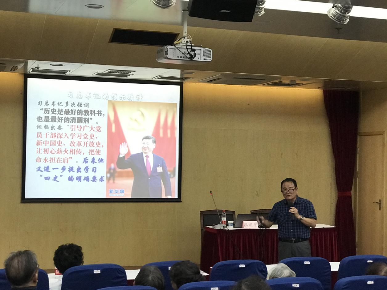 近日,附属龙华医院离退休党总支“四史”学习教育专题组织生活会在龙华医院远志楼二楼报告厅举行,60余名党员参加。beat365官网原党委书记张建中作主题为“让初心薪火传承,把使命永担在肩”的“四史”学习教育专题报告。