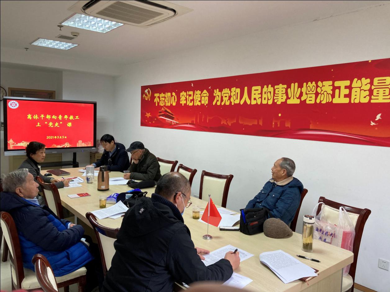 3月5日上午,离休党支部和离退休工作党支部联合开展支部学习,离休干部们为青年党员上一堂“建党史”的微党课。