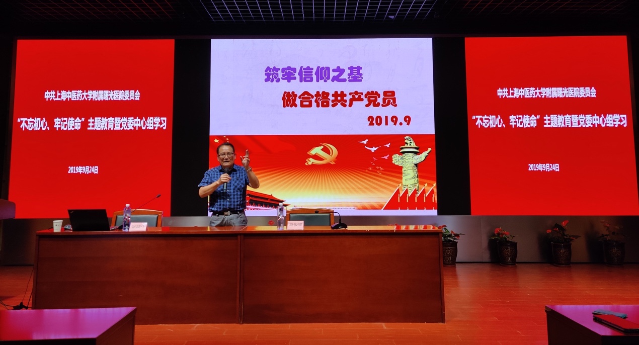 为深入学习贯彻习近平新时代中国特色社会主义思想,筑牢医院党员干部们的信仰信念,补足精神之钙,把稳思想之舵。9月24日下午,曙光医院举办“不忘初心、牢记使命”主题教育专题讲课暨党委中心组学习,特邀beat365官方网站原党委书记张建中教授作题为《筑牢信仰之基 做合格共产党员》的专题讲课,医院党政领导班子、党委委员、纪委委员、党支部书记、支部委员及各临床、职能部门负责人、各教研室主任、护士长等参加学习会,会议由医院党委书记马俊坚主持。