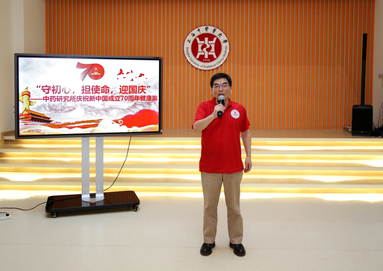 9月26日下午,为庆祝中华人民共和国成立70周年,推进“不忘初心、牢记使命”主题教育,落实立德树人根本任务,增进师生情谊,培育研究生积极向上的健康心态,营造阳光向上的校园氛围,中药研究所举办庆祝新中国成立70周年健康跑活动。副校长陈红专宣布仪式启动,中药研究所党总支副书记、所长王峥涛作动员讲话,仪式由中药研究所党总支书记、副所长王广东主持,全所师生200余人参加活动。