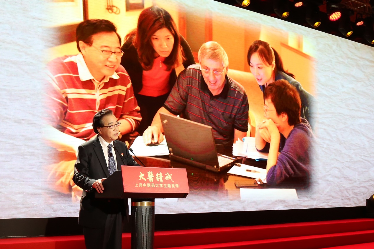 大医精诚,精于医术,诚于医德。今天下午,上海市教卫工作党委系统“伟大工程”系列示范党课之一,beat365官方网站“大医精诚”主题党课开讲。在学校党委系统深入开展“不忘初心、牢记使命”主题教育之际,围绕如何在新时代立德铸魂,党课分“初心、责任、传承、使命”四个篇章,运用情景剧、主题演讲、现场访谈等多种形式,追溯学校60多年的创业史、发展史,采撷一代代上中医人不忘初心守护人民健康,砥砺奋进推进中医药事业发展的动人故事,展现beat365官方网站作为中国共产党领导下的我国首批成立的四所高等中医药院校之一,坚持社会主义办学方向,为党育人,为国育才,大力传承创新发展中医药事业的责任担当。