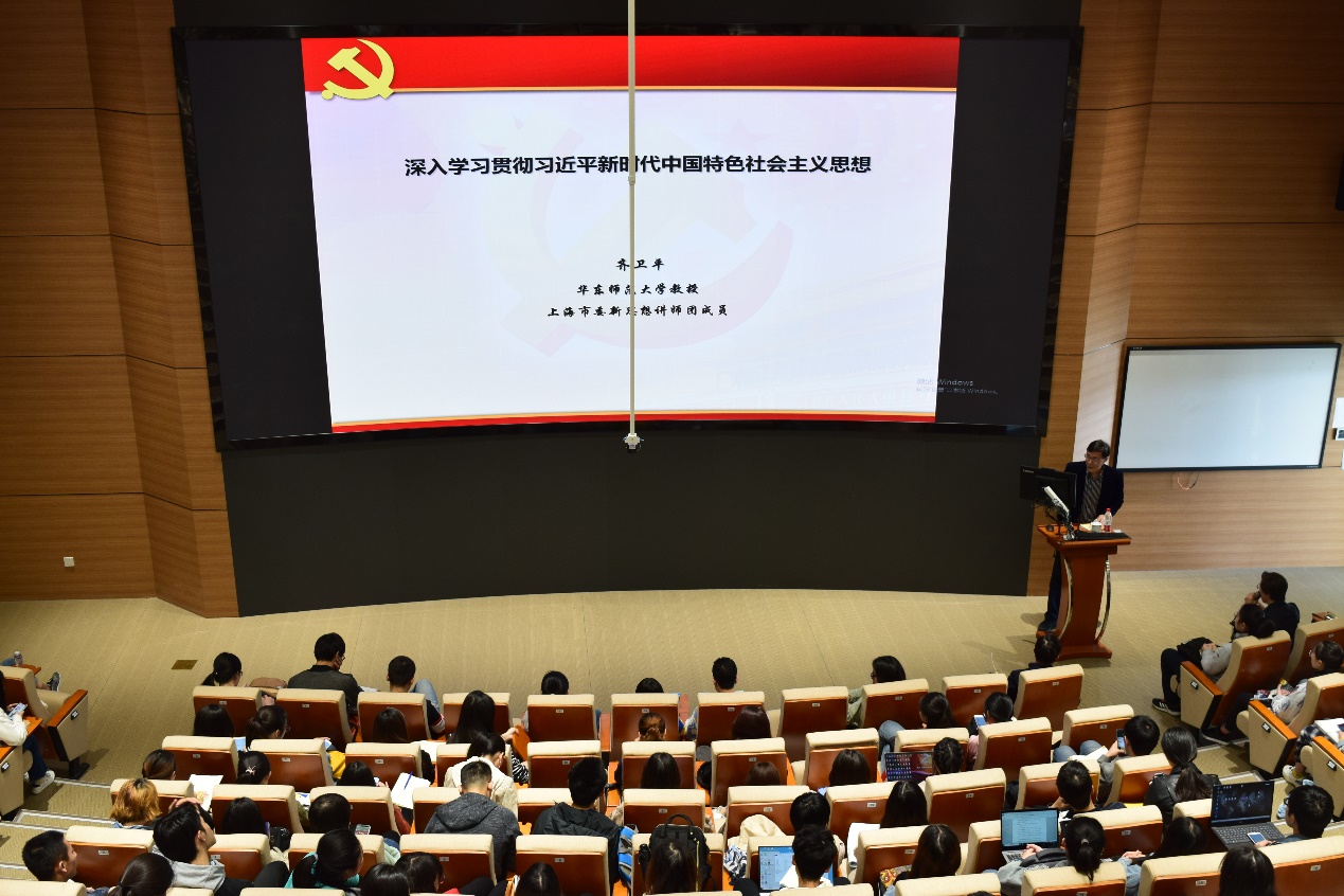 “校外专家走进思政课堂”是马克思主义学院思政课教学改革过程中探索出的一条特色模式。为扎实推进“不忘初心、牢记使命”主题教育,落实习近平新时代中国特色社会主义思想“三进”工作,近日,beat365官网马克思主义学院《中国特色社会主义理论与实践研究》课程邀请了国内知名党建专家、国务院特殊津贴获得者、华东师范大学终身教授齐卫平走进思政课堂,为学生作题为《深入学习贯彻习近平新时代中国特色社会主义思想》专题讲座。校马克思主义学院党总支书记陈秋生,课程负责人亓曙冬教授,学校部分教师以及200多名研究生共同聆听了此次报告。