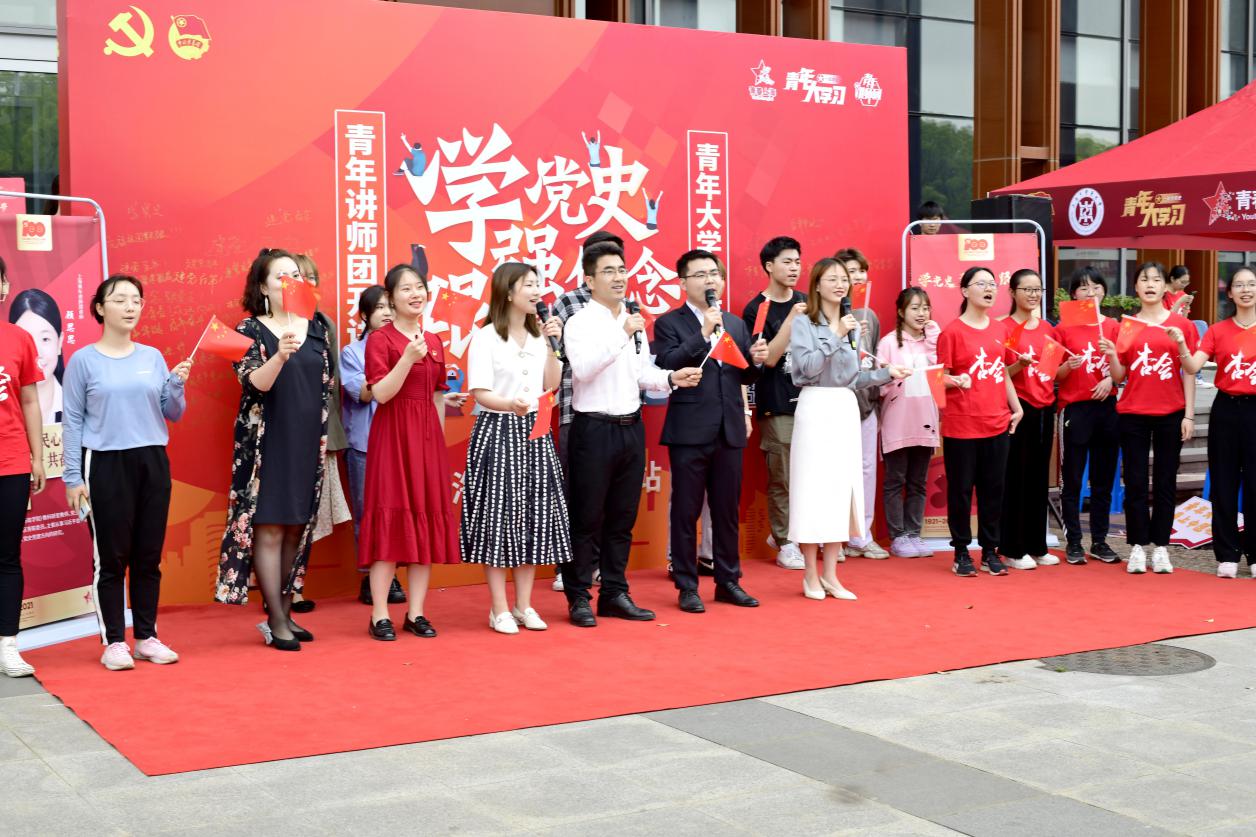 主题活动由师生快闪拉开序幕,数十位师生共同演绎歌舞串烧,点燃学生打卡学习热情。在建党百年之际,beat365官网培养了100名“星火”大学生红色精神宣讲员,他们在假期课余前往革命遗址和红色场馆,传承革命精神,讲好红色故事,传递红色信仰。