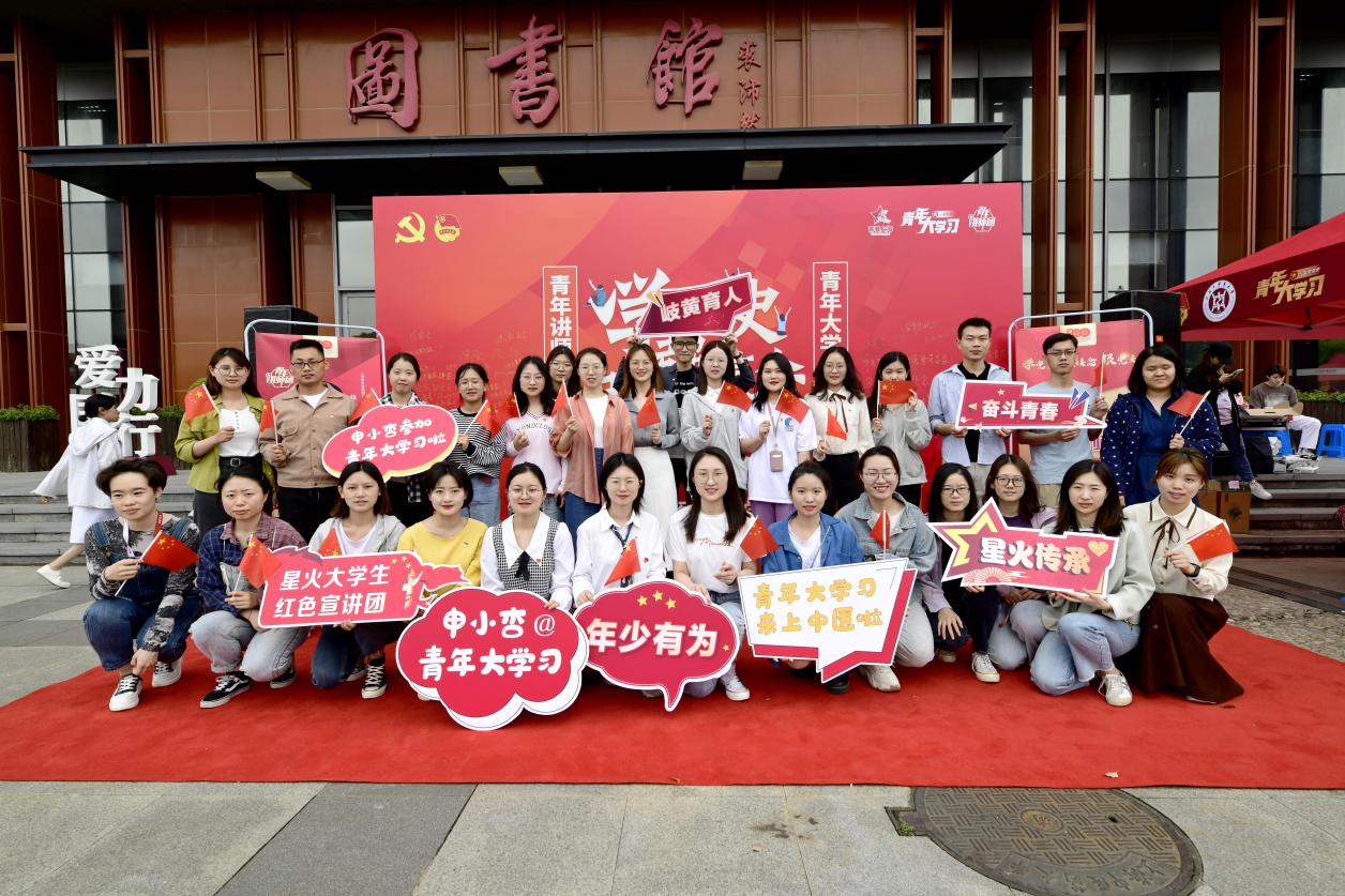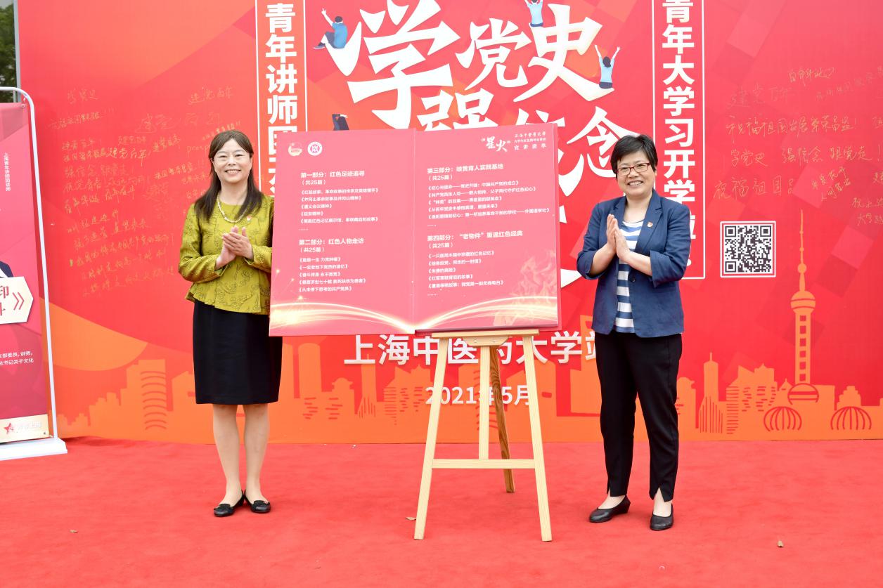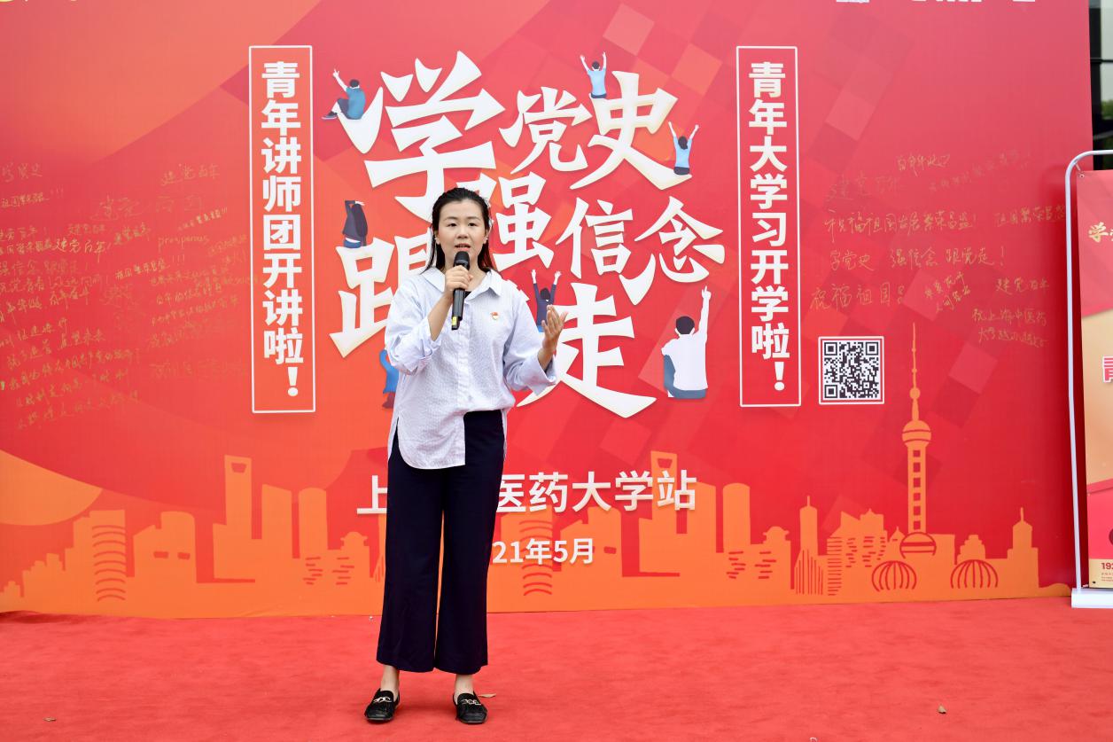 为进一步丰富学习实践活动形式,在全校团员青年中广泛持续深入开展“学党史、强信念、跟党走”主题教育,5月12日在图书馆前,beat365官网“青年大学习”线下学习暨“星火”大学生红色精神宣讲团宣讲清单发布活动举行。校党委副书记、副校长朱惠蓉,组织部部长夏文芳,宣传部副部长刘虹,上海中医药博物馆党支部副书记郭峰、团委书记吴平等相关职能部门负责人、教师及学生代表参加活动。