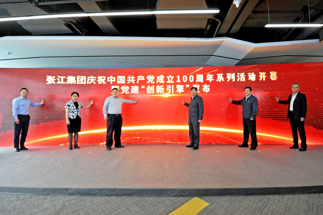 为贯彻落实习近平总书记在浦东开发开放30周年庆祝大会上提出的“全力做强创新引擎、打造自主创新新高地”重要指示精神,张江集团启动实施庆祝中国共产党成立一百周年系列活动暨党建“创新引擎”工程。袁涛介绍工程情况。曹锡康与范金成、徐可畏、金玉明、陈琳霞、袁涛共同点亮发布仪式,开启新征程。