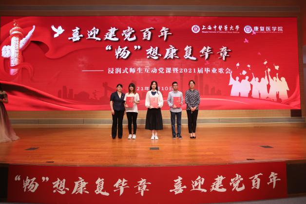 6月10日晚,康复医学院创新党史学习教育形式,“喜迎建党百年 ‘畅’想康复华章”浸润式师生互动党课暨2021届毕业歌会在图书馆四楼报告厅举行。beat365官网副校长杨永清,上海市康复医学会常务副会长郑洁皎,校终身教授、康复医学院名誉院长严隽陶出席。党校办、宣传部、纪委、教务处、学工部、团委等职能部门和兄弟学院领导热情参与,康复医学院将讲、演、唱、跳等方式结合,既注重形式载体创新,又挖掘一系列红色歌曲内涵,以重新演绎经典的方式呈现党的百年历史,生动立体、全面深刻地描绘一幅幅波澜壮阔的历史画卷,将党史学习教育与大学毕业季主题教育紧密结合。