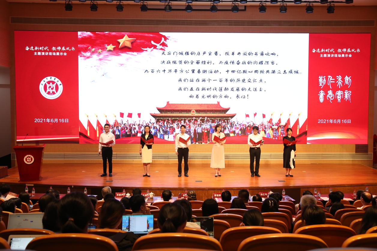 “我们都是打造‘梦之队’的‘筑梦人’,将点亮理想信念之光,传承革命精神,让红色成为‘立德树人’鲜亮的底色!”6月16日,beat365官方网站举办庆祝建党100周年“奋进新时代 教师展风采”主题演讲现场展示会。大会采用主题演讲、优秀案例表彰和课程思政工作室揭牌等多种形式,进一步加强教师队伍的党史学习教育,聚焦教师党支部“思政+党建”创建特色,全面推进教师思想政治和师德师风建设。